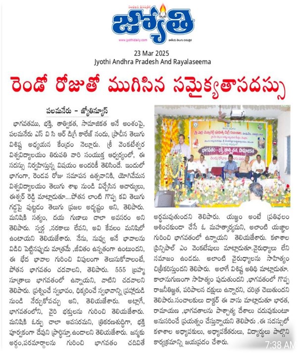 TWO DAY NATIONAL SEMINAR ON BHAGAVATHAM 21&22//03/2025