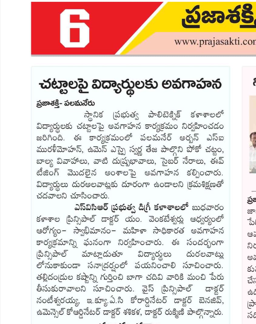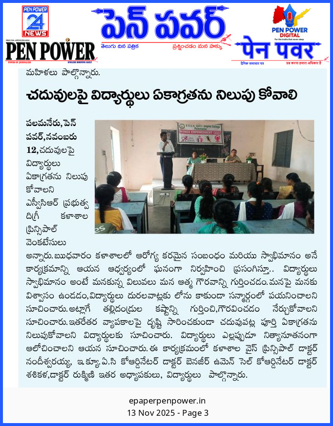 - Awareness program on "Healthy Relationships and Self-respect" to female students 12/11/2025